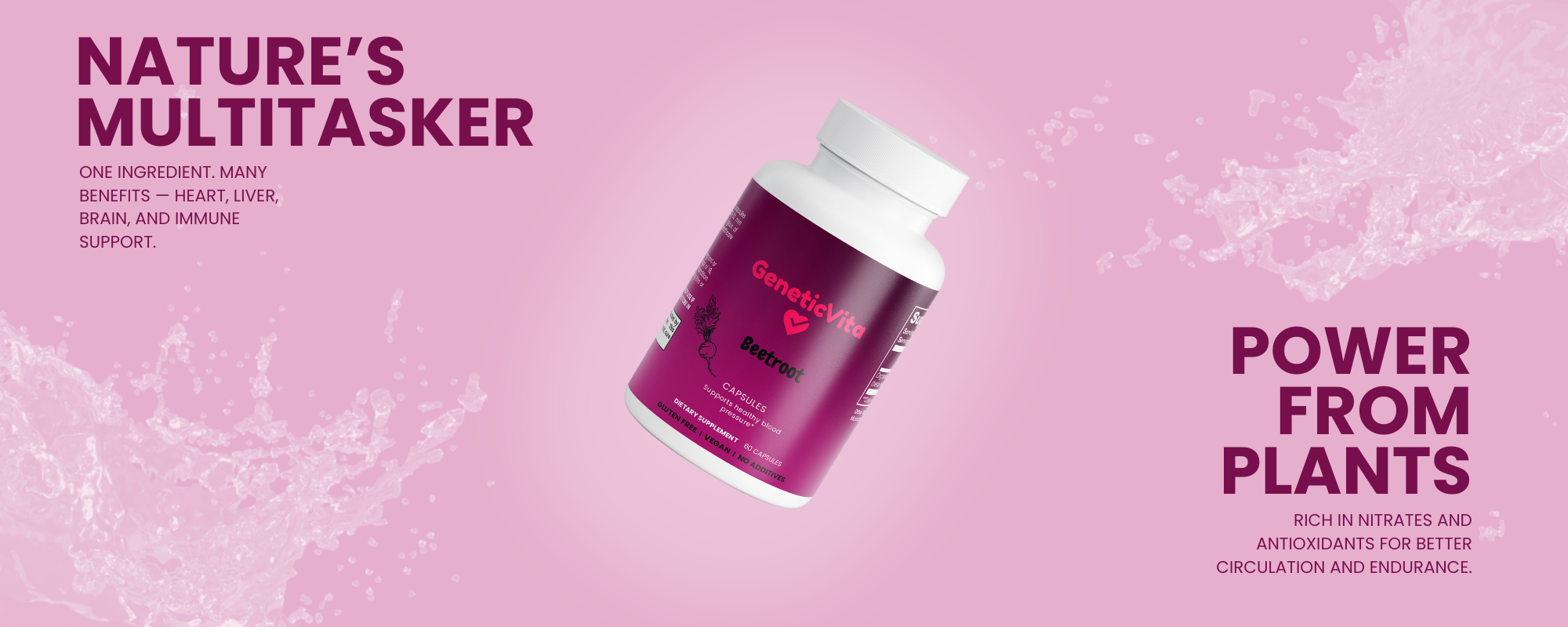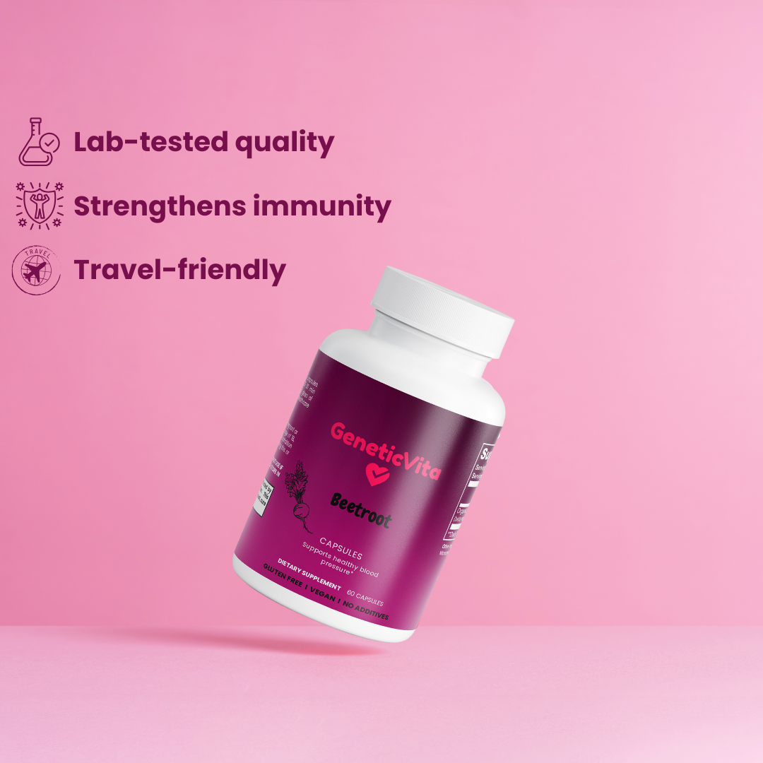 "At GeneticVita, we believe optimal health starts at the cellular level. Founded by health enthusiasts and backed by scientific research, we're dedicated to providing premium supplements that harness nature's power. Our beetroot capsules represent our commitment to quality, purity, and your wellbeing."